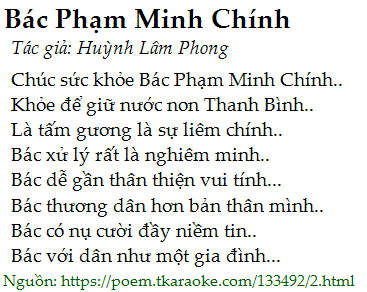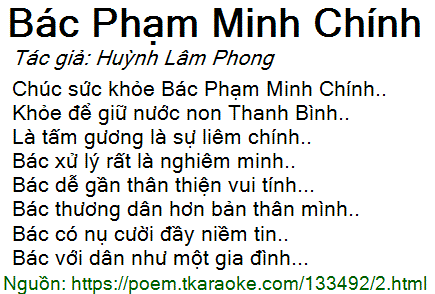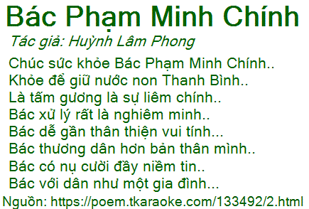 Chúc sức khỏe Bác Phạm Minh Chính..