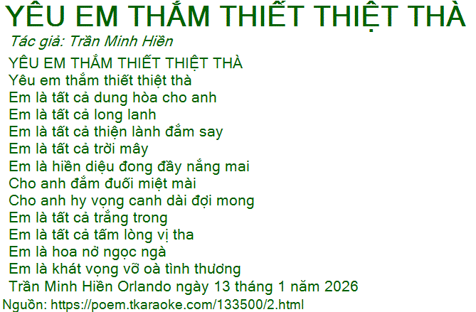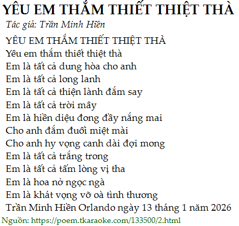 YÊU EM THẮM THIẾT THIỆT THÀ