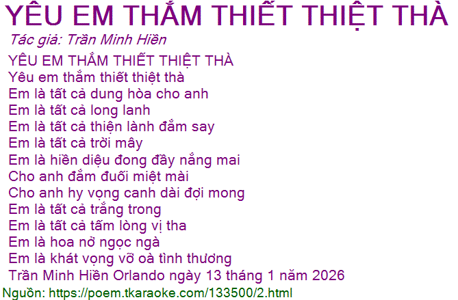 yêu em thắm thiết thiệt thà