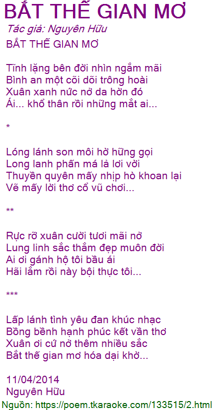 Bắt thế gian mơ hóa dại khờ...