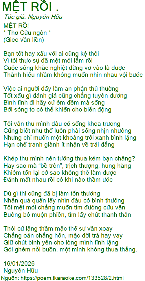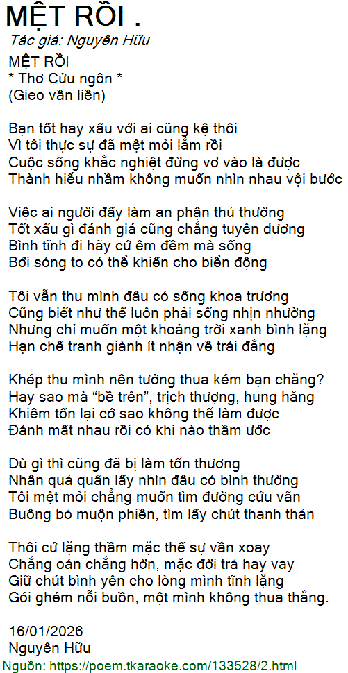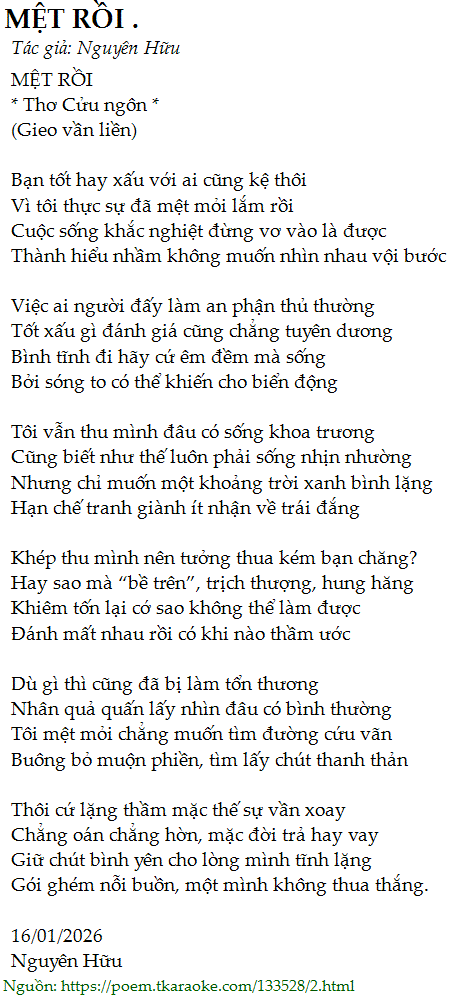 Vì tôi thực sự đã mệt mỏi lắm rồi