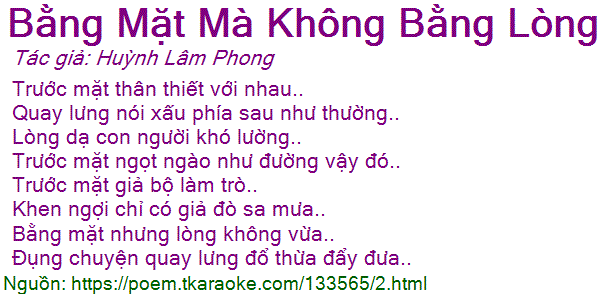 bằng mặt mà không bằng lòng