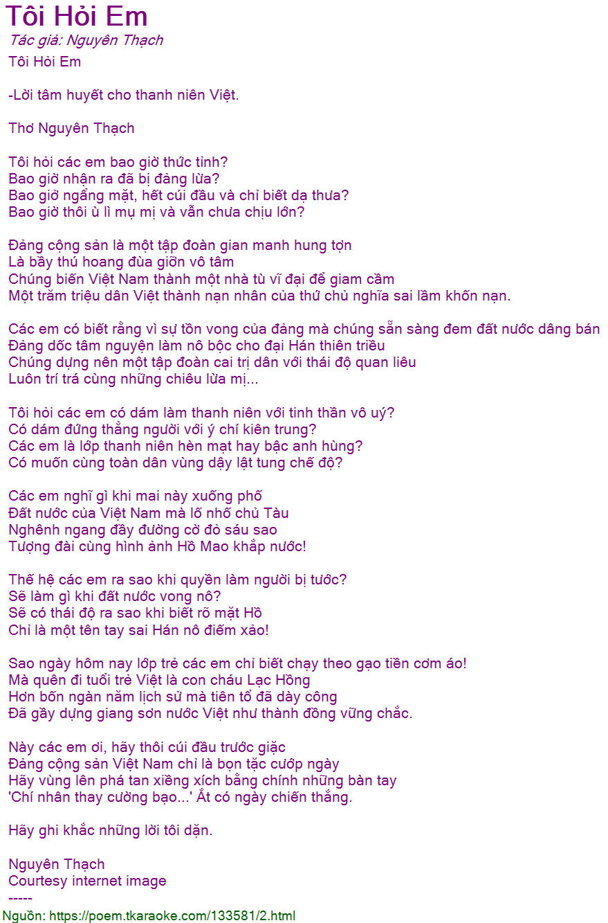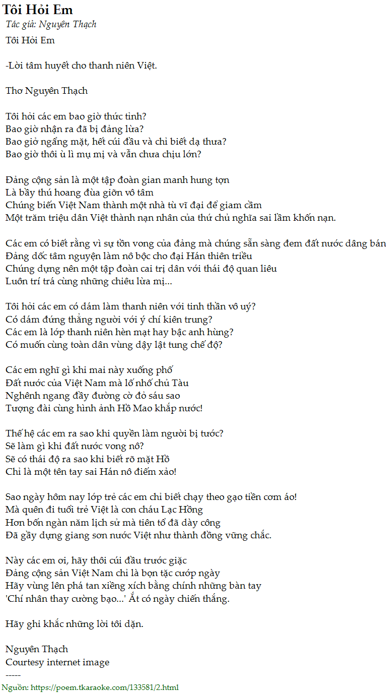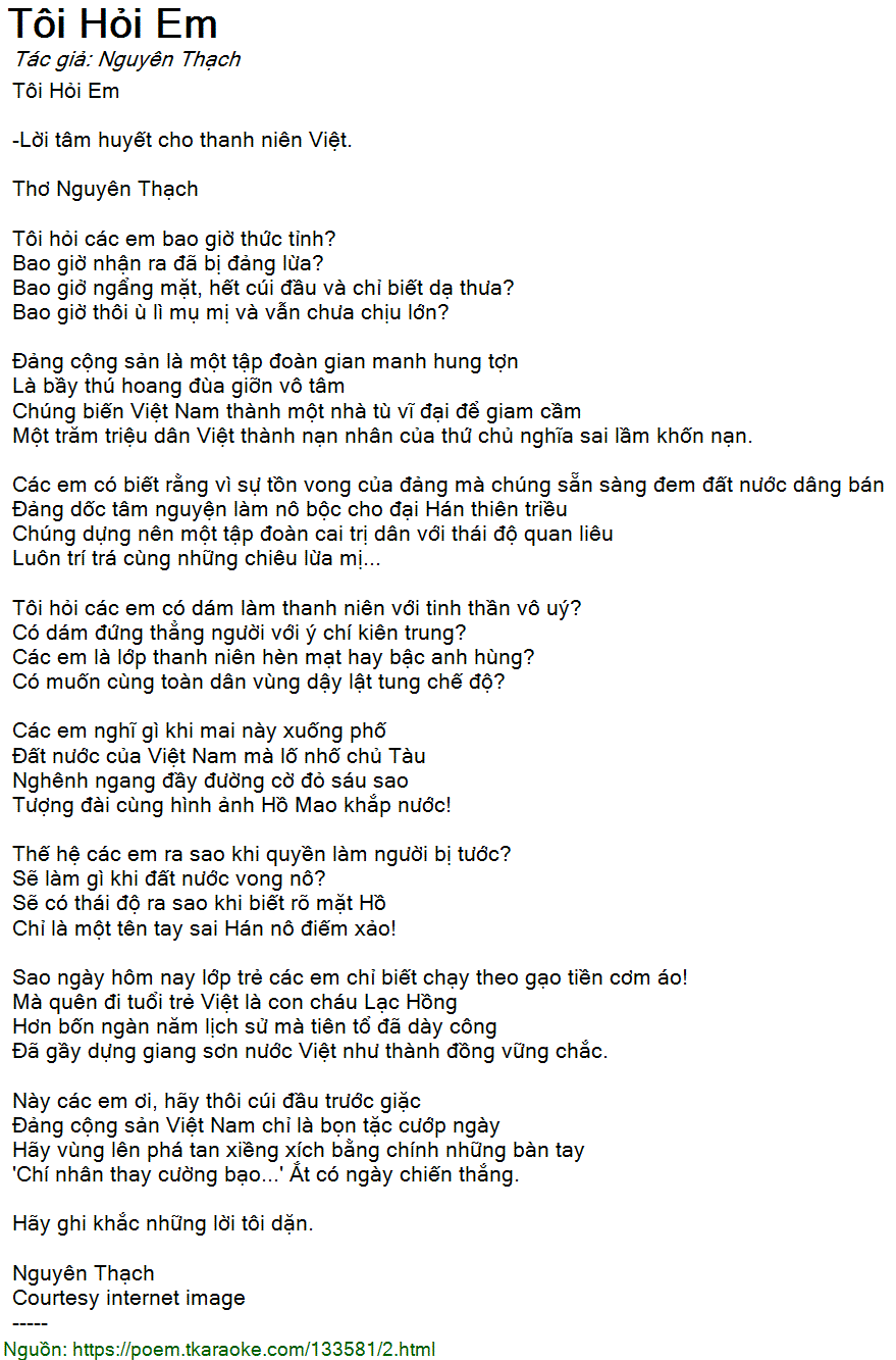 Các em có biết rằng vì sự tồn vong của đảng mà chúng sẵn sàng đem đất nước dâng bán