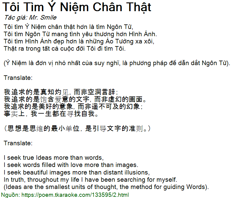 Tôi tìm Ý Niệm chân thật hơn là tìm Ngôn Từ,