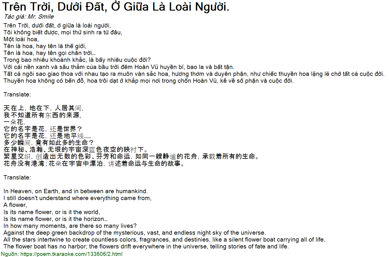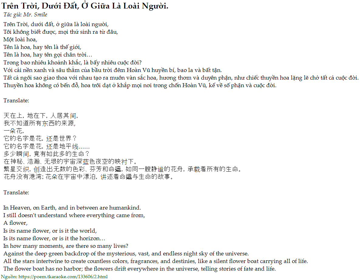 Trên Trời, dưới đất, ở giữa là loài người,