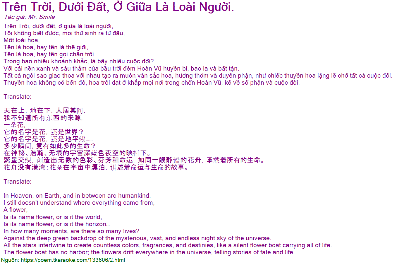 Thuyền hoa không có bến đỗ, hoa trôi dạt ở khắp mọi nơi trong chốn Hoàn Vũ, kể về số phận và cuộc đời.