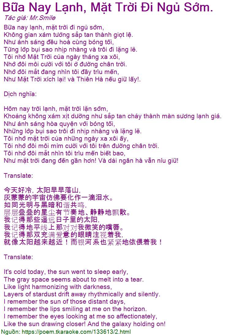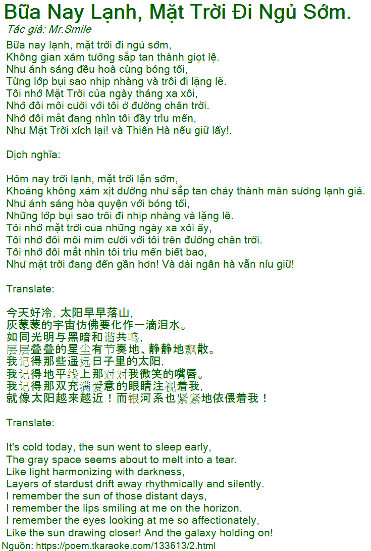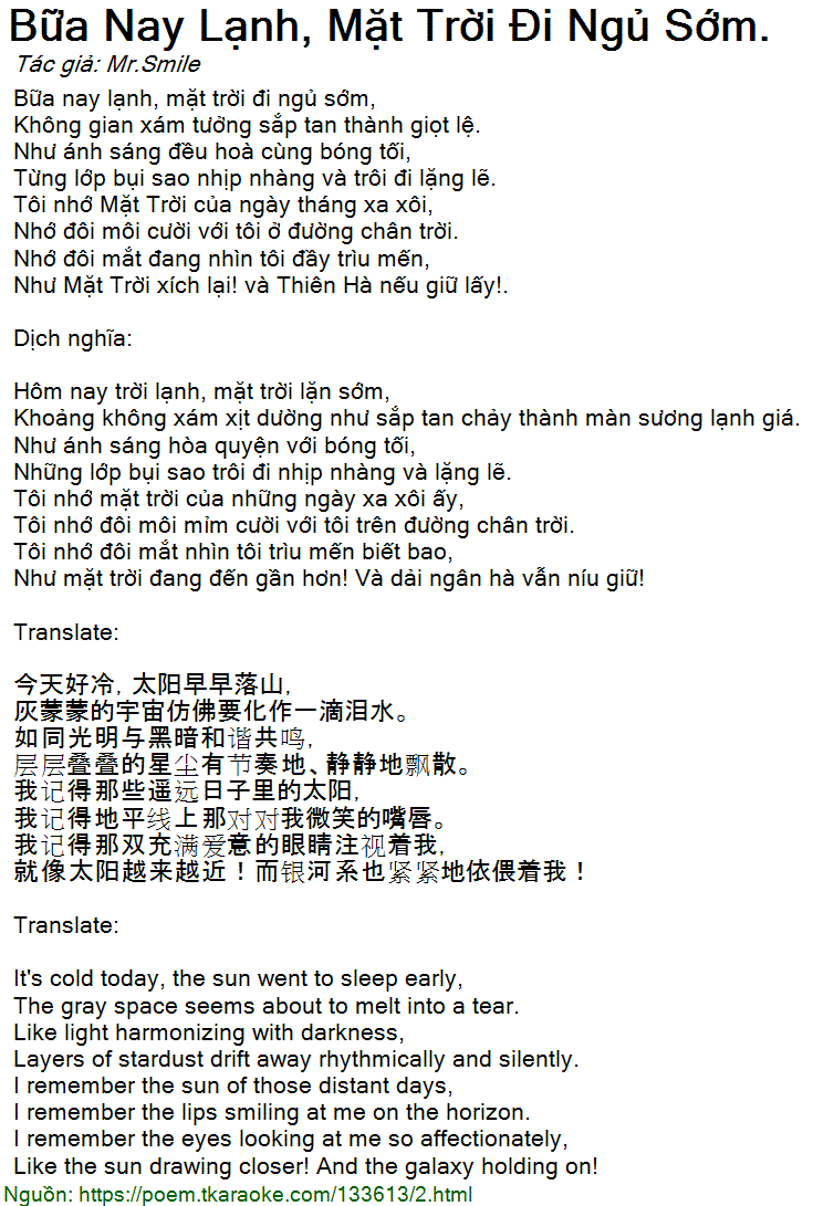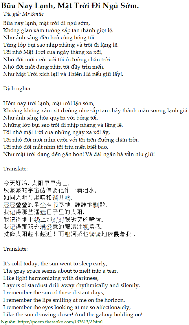 Bữa nay lạnh, mặt trời đi ngủ sớm,