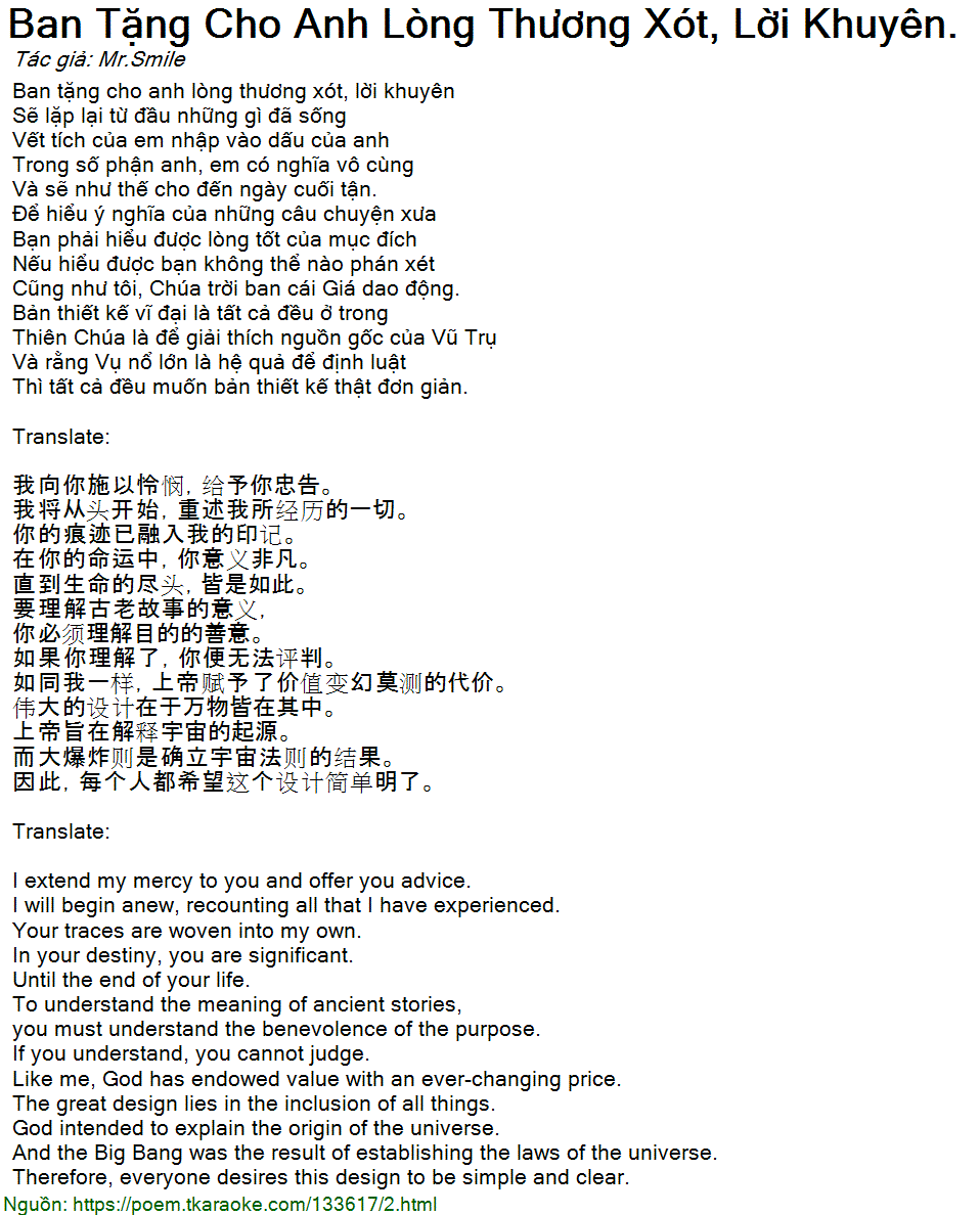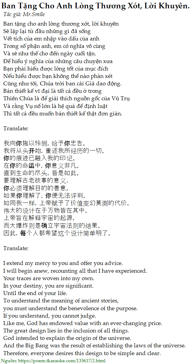 ban tặng cho anh lòng thương xót, lời khuyên.