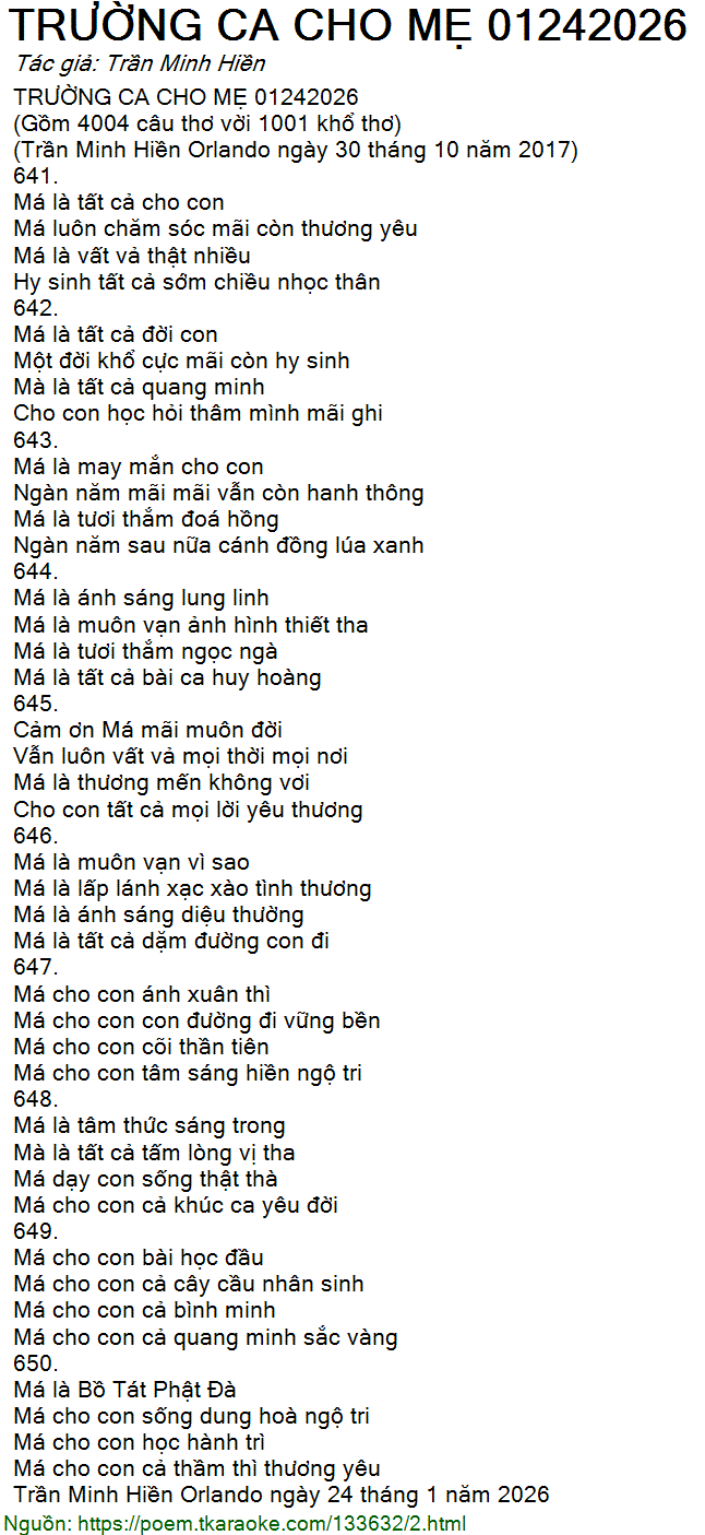 (Gồm 4004 câu thơ vời 1001 khổ thơ)