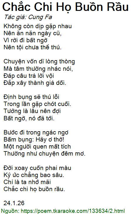 chắc chi họ buồn rầu