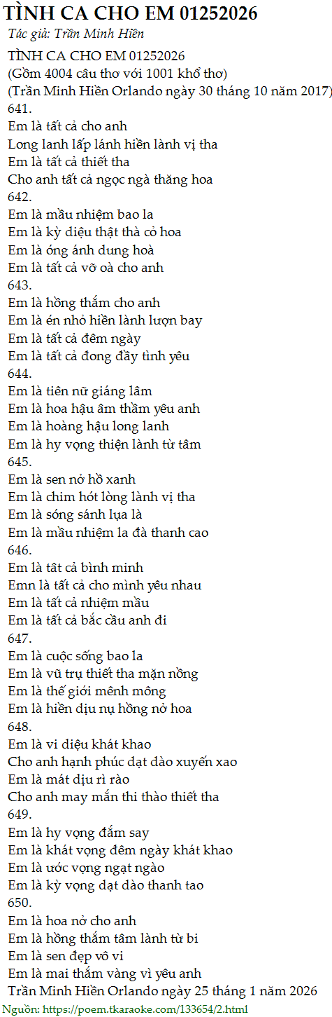 tình ca cho em 01252026