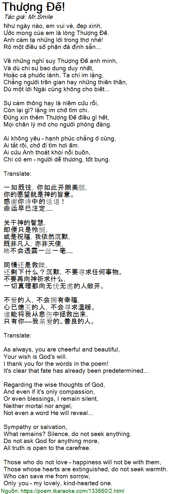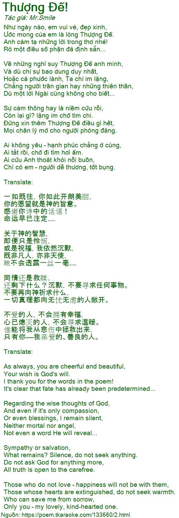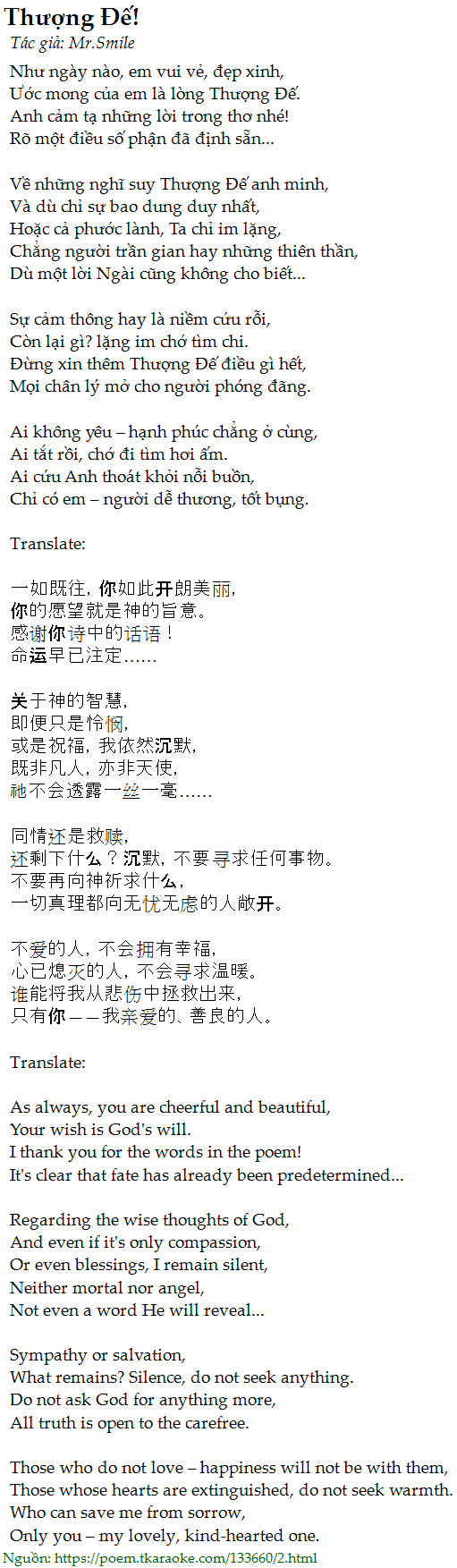Ước mong của em là lòng Thượng Đế.