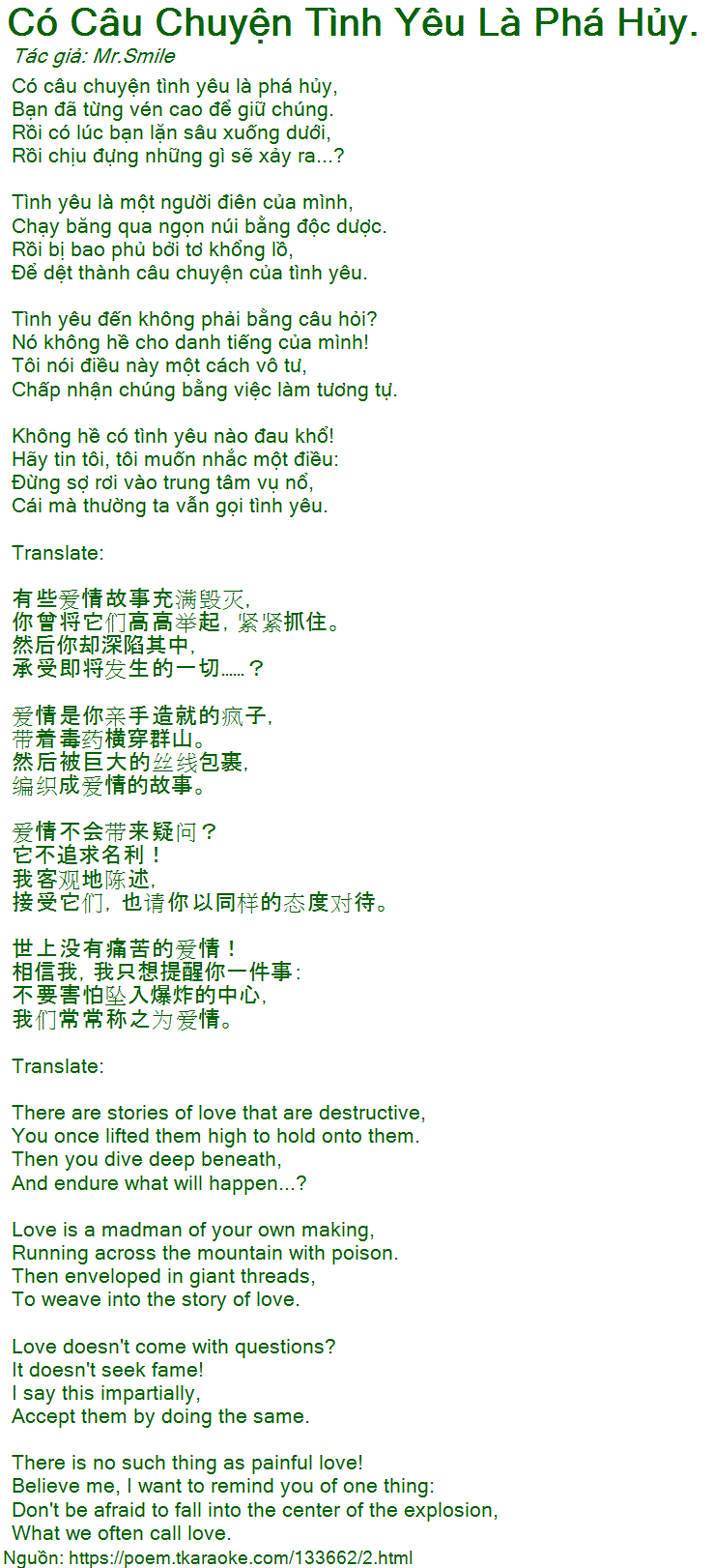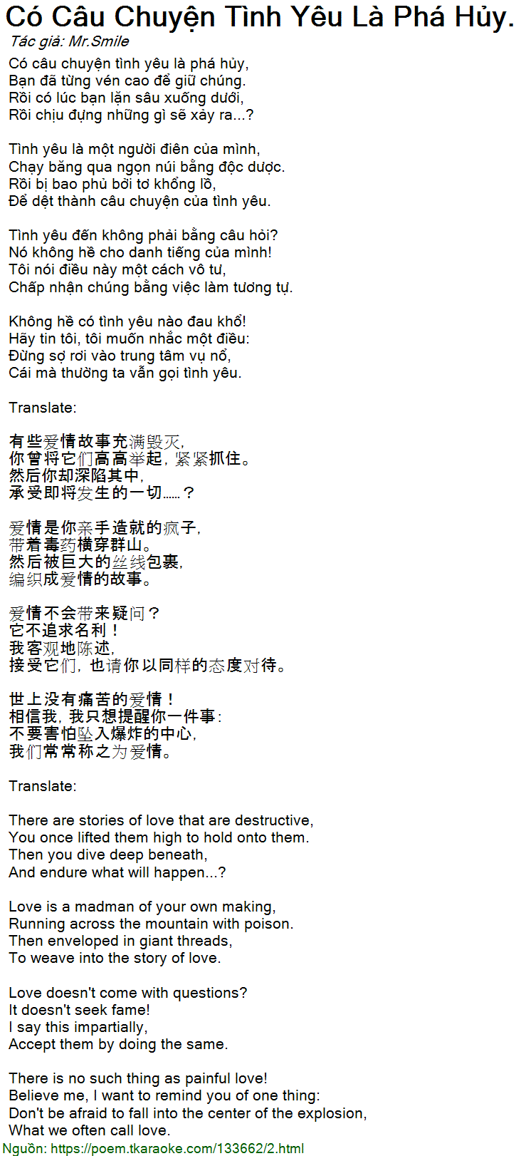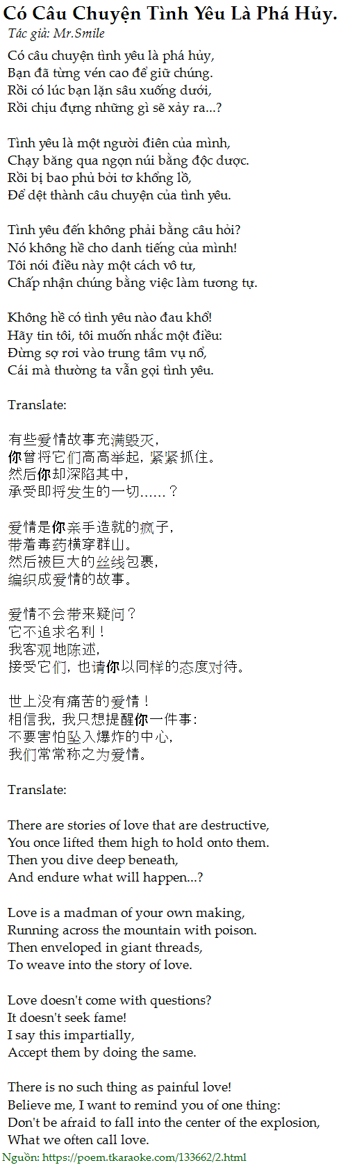 Có câu chuyện tình yêu là phá hủy,