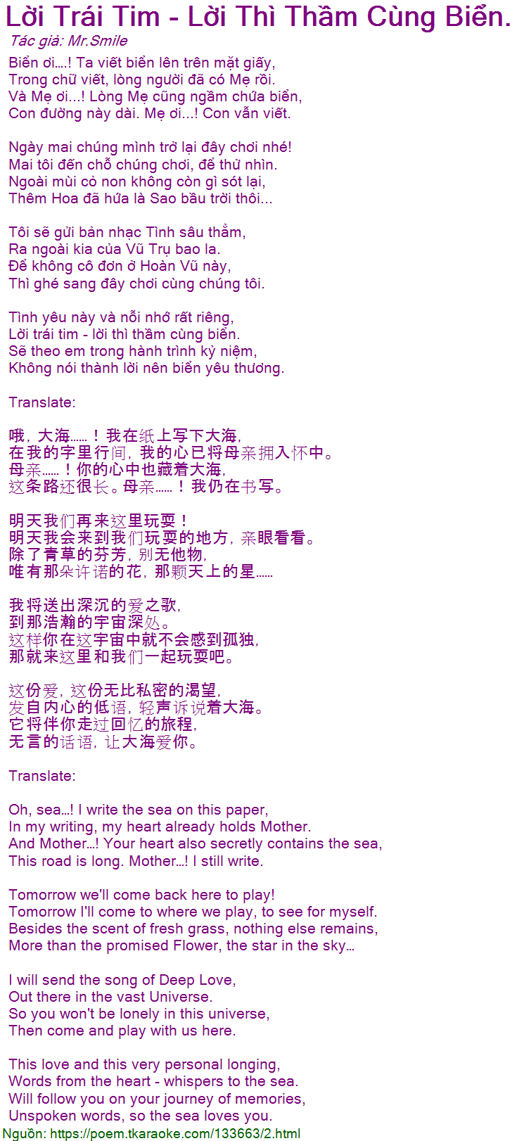 Lời trái tim - lời thì thầm cùng biển.