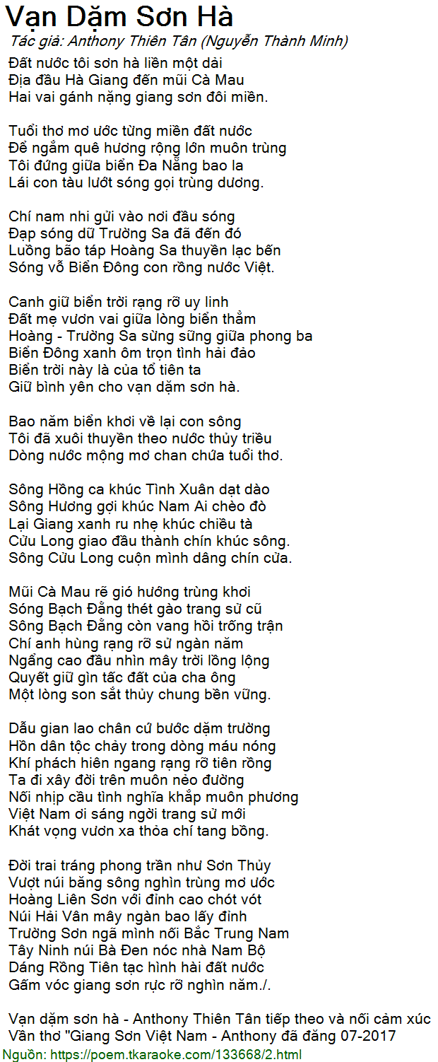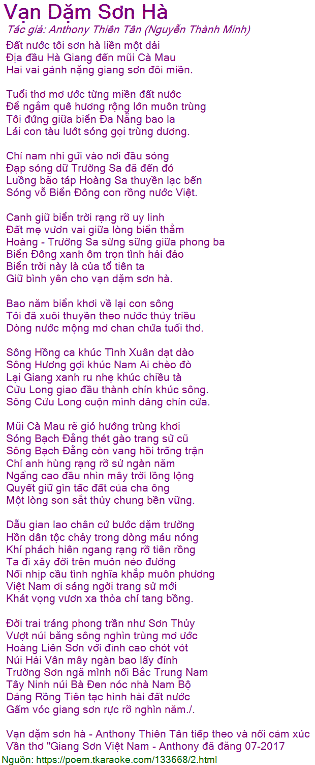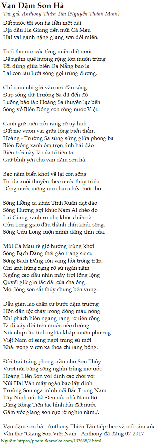 Vần thơ "Giang Sơn Việt Nam - Anthony đã đăng 07-2017