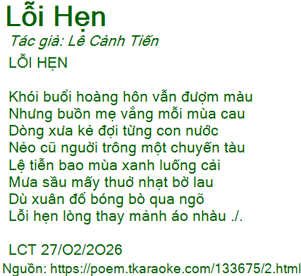 Lỗi hẹn lòng thay mảnh áo nhàu ./.