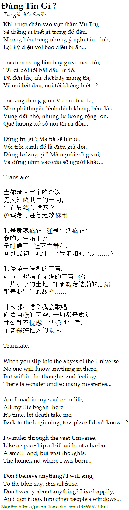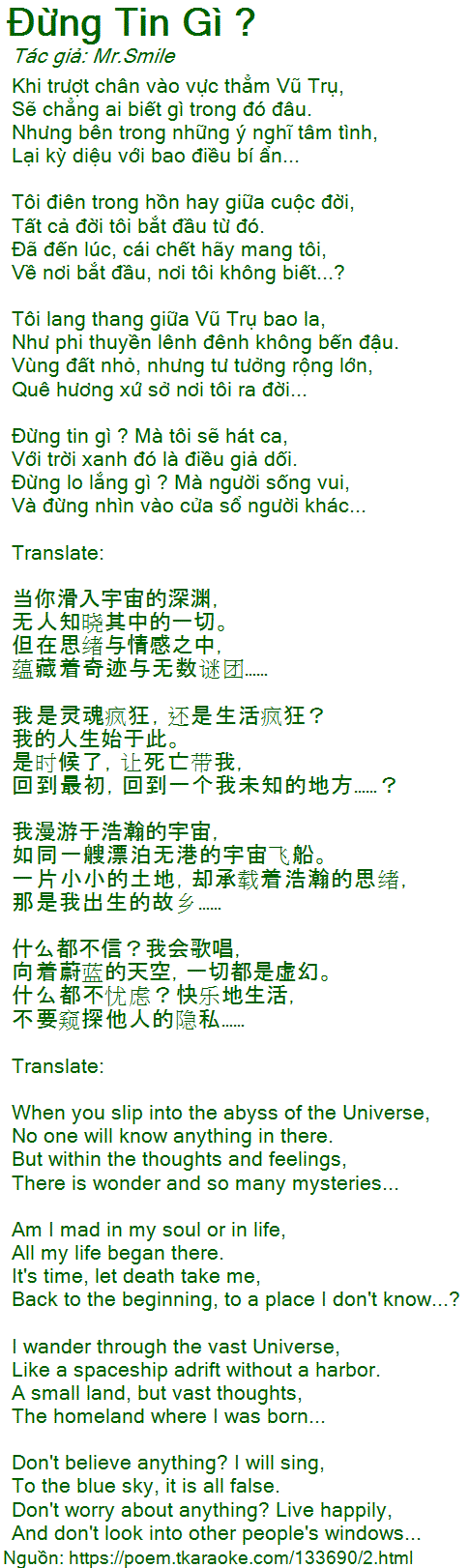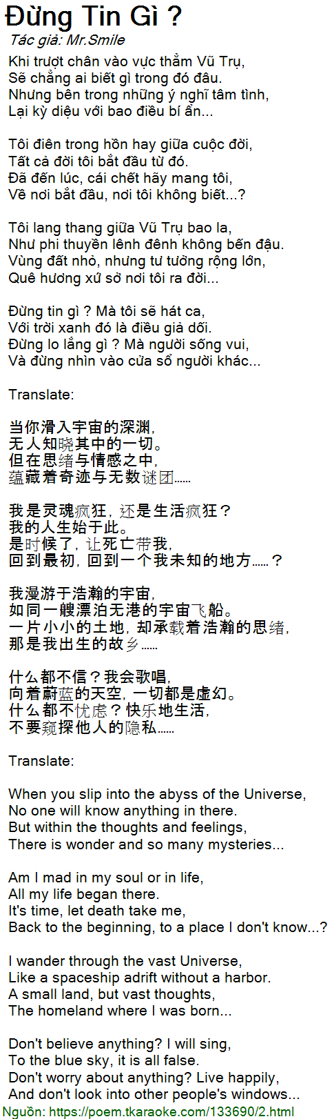 Đừng tin gì ? Mà tôi sẽ hát ca,