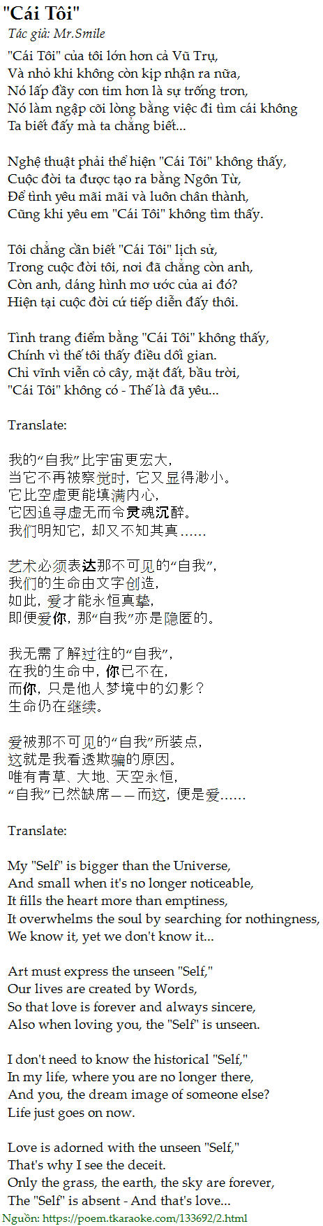 Cũng khi yêu em "Cái Tôi" không tìm thấy.