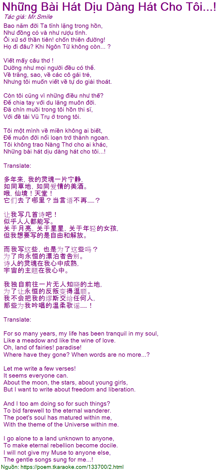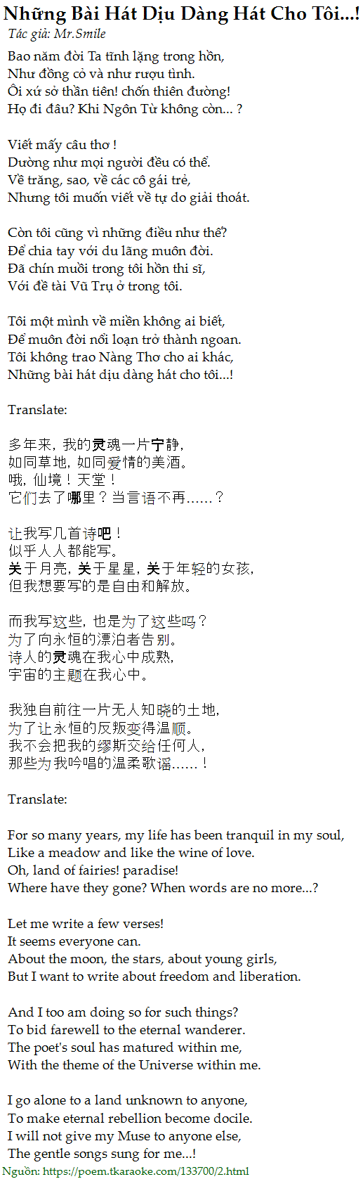 Những bài hát dịu dàng hát cho tôi...!