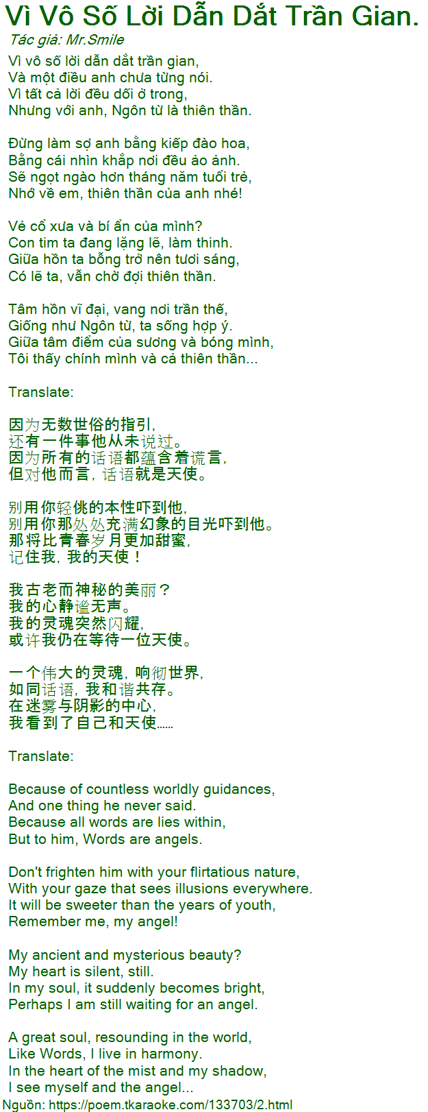 Nhung voi anh, Ngon tu la thien than.