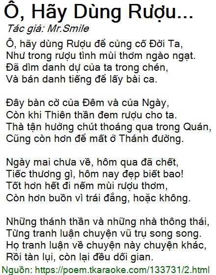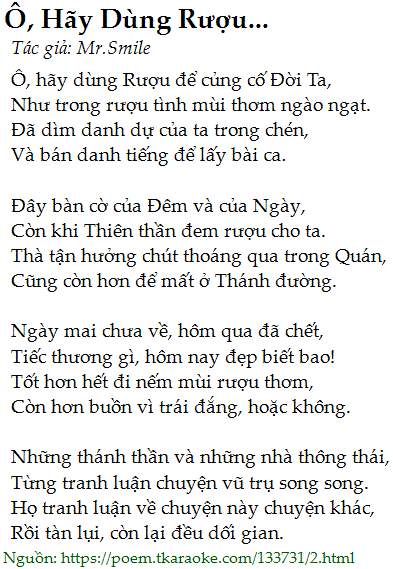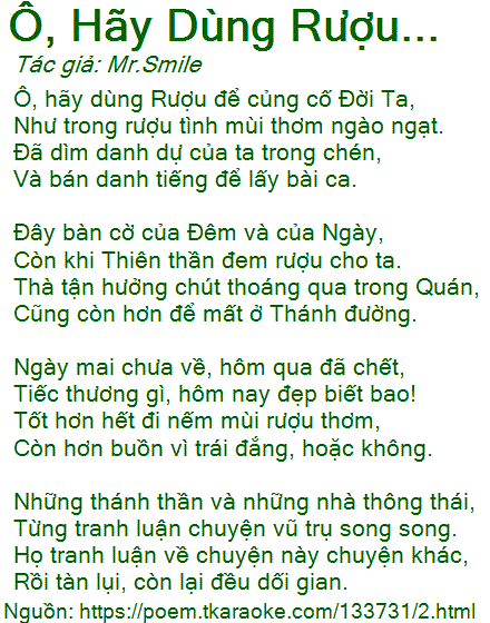 ô, hãy dùng rượu...