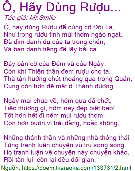 Ô, hãy dùng Rượu để củng cố Đời Ta,