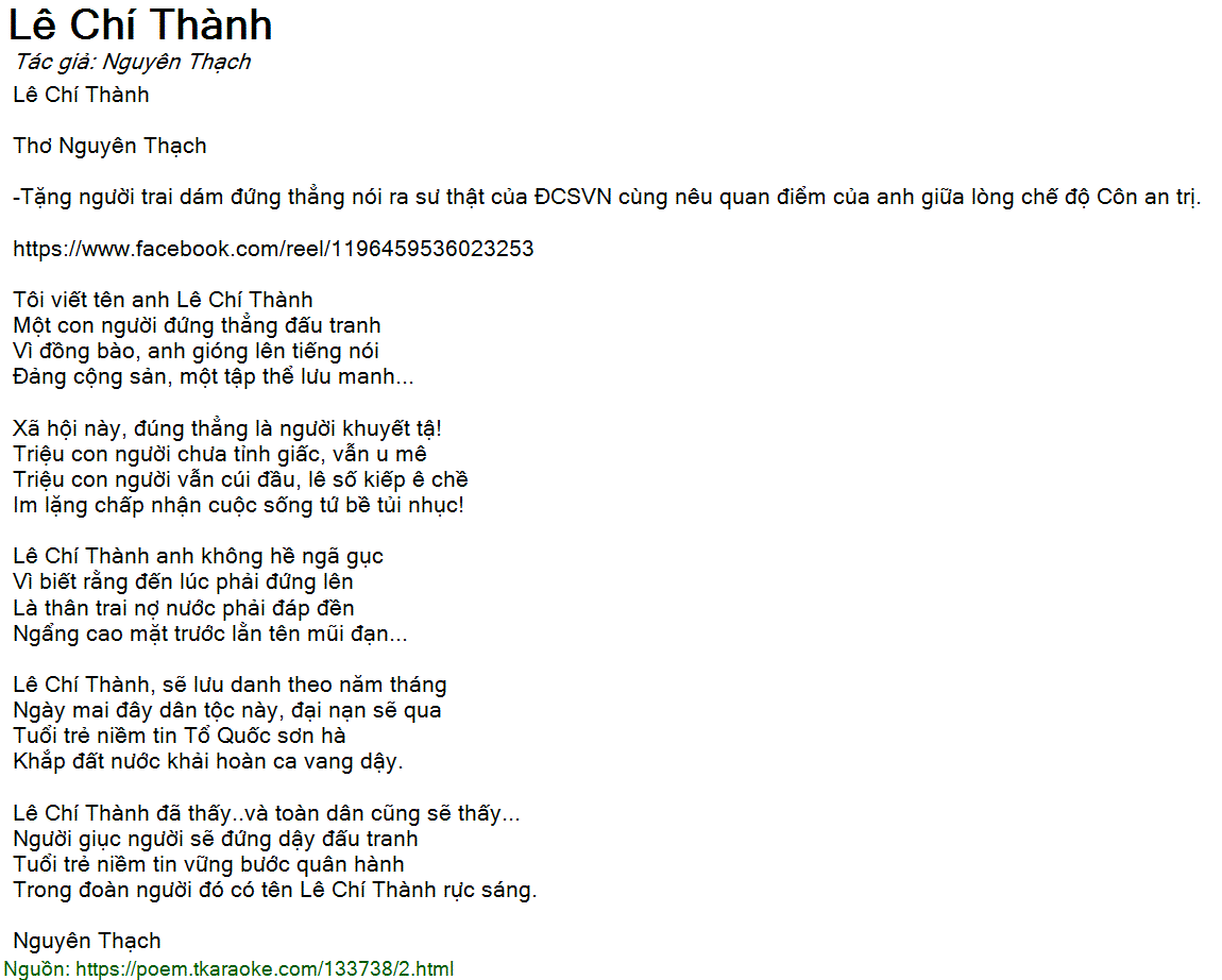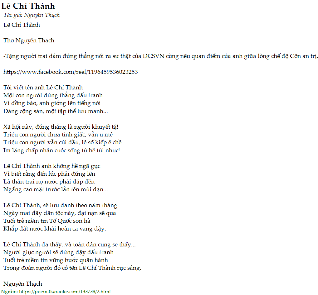 -Tặng người trai dám đứng thẳng nói ra sư thật của ĐCSVN cùng nêu quan điểm của anh giữa lòng chế độ Côn an trị.