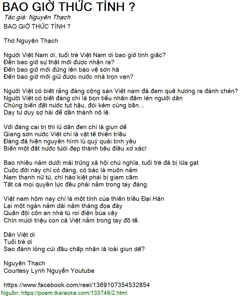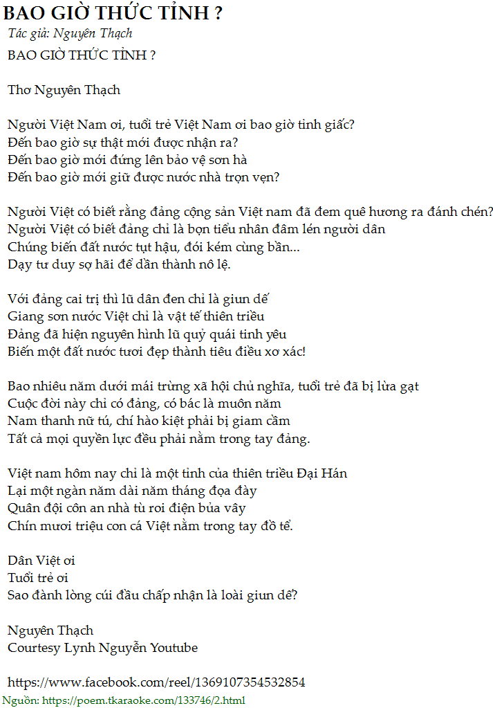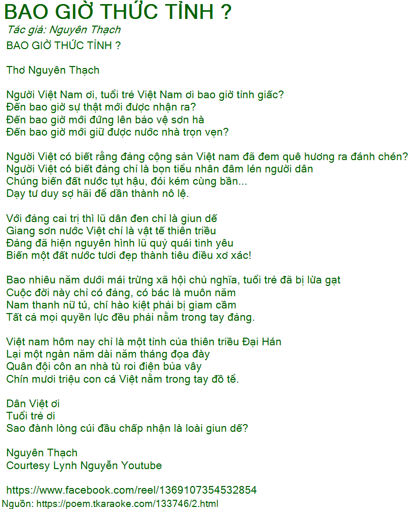 Nguoi Viet Nam oi, tuoi tre Viet Nam oi bao gio tinh giac?