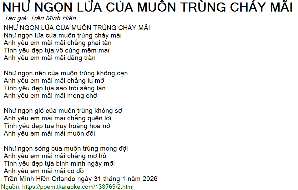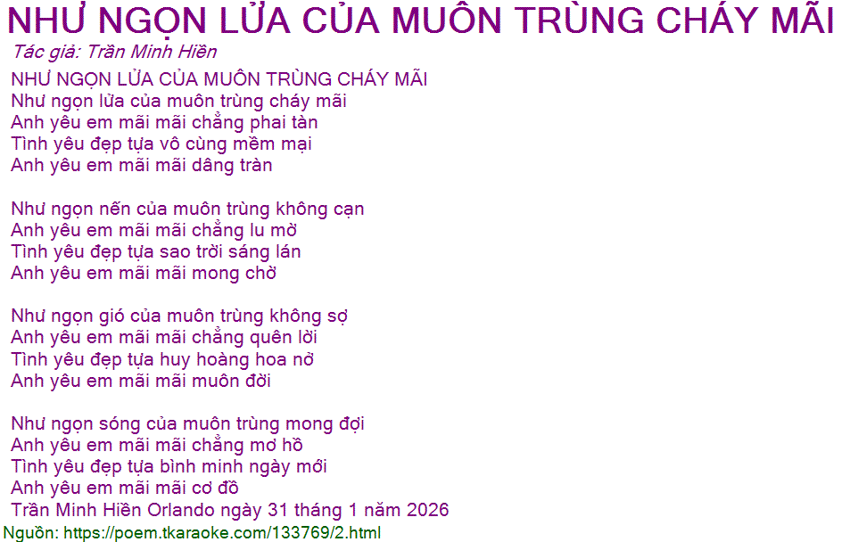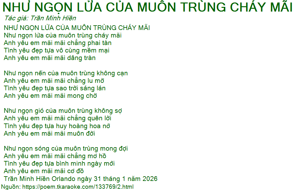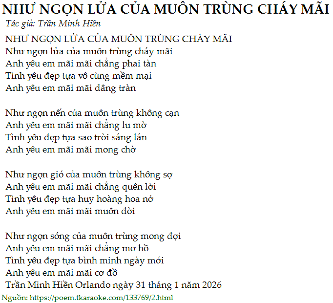 NHƯ NGỌN LỬA CỦA MUÔN TRÙNG CHÁY MÃI