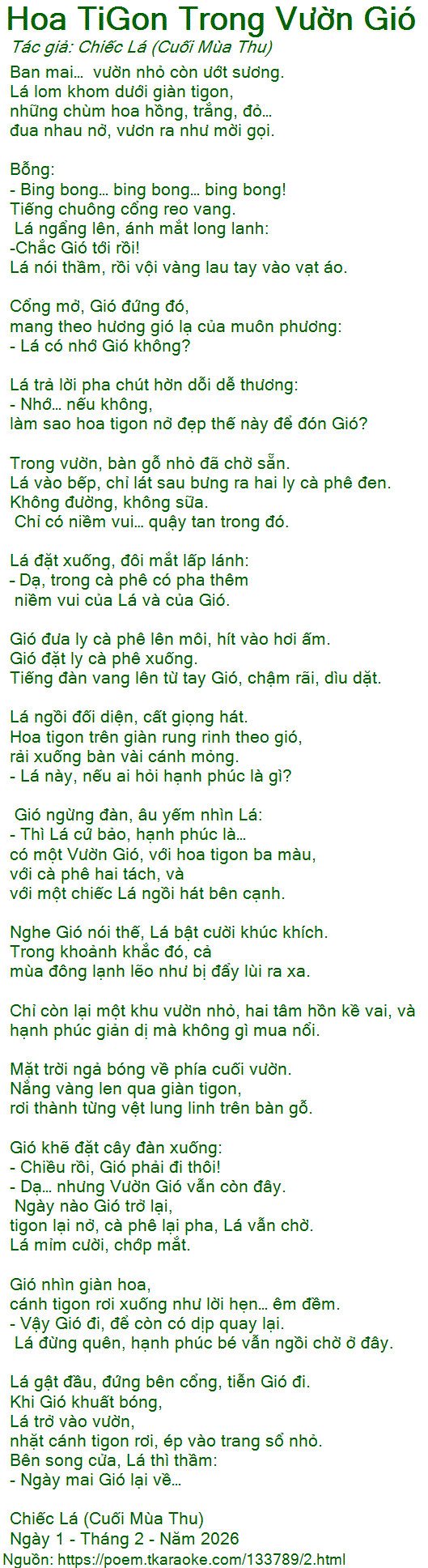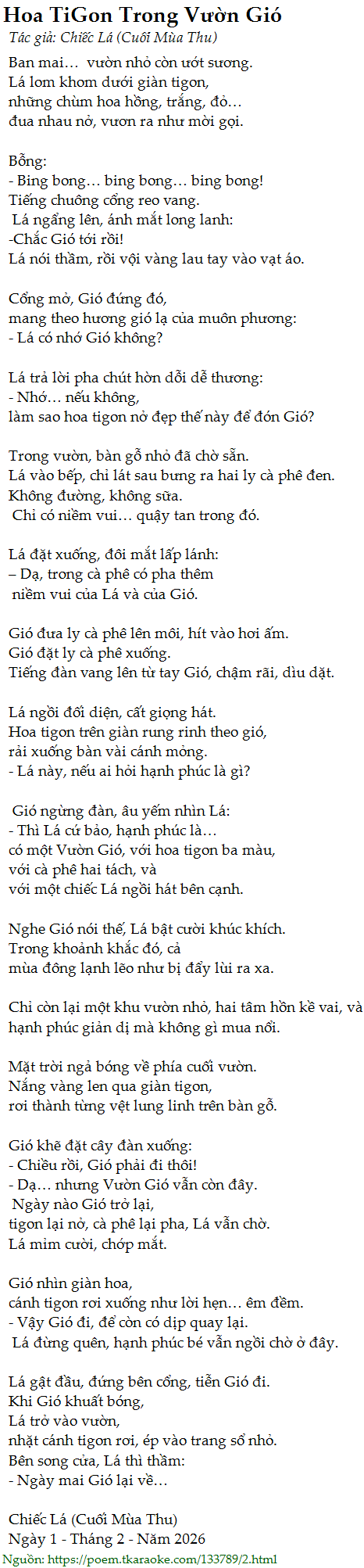 tigon lại nở, cà phê lại pha, Lá vẫn chờ.