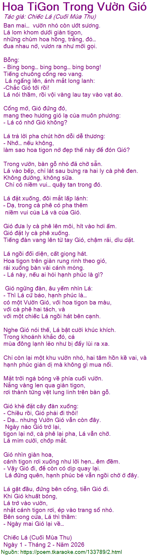 Gió ngừng đàn, âu yếm nhìn Lá: