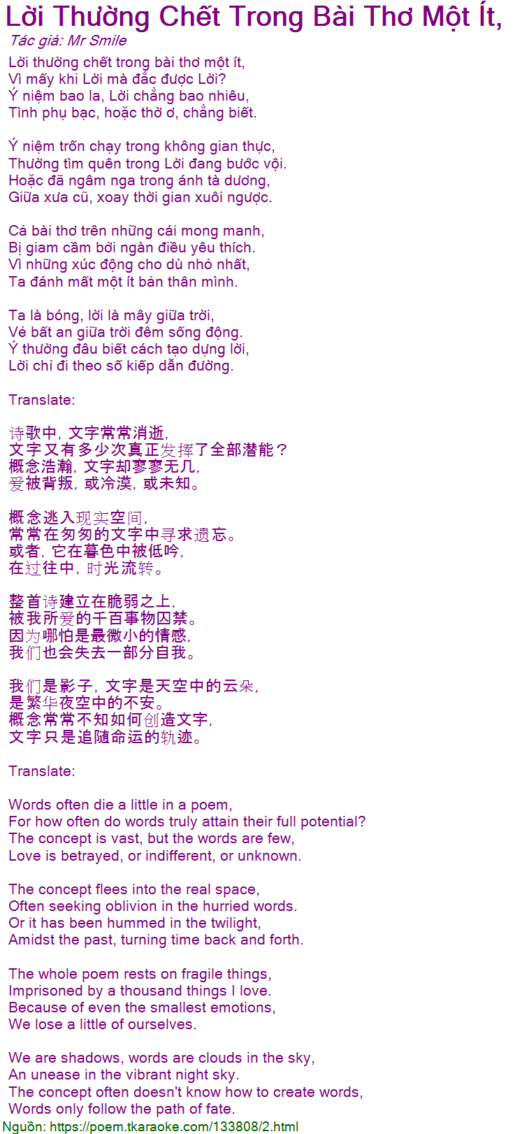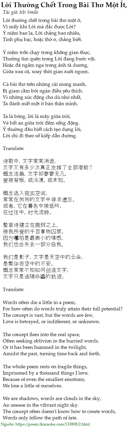lời thường chết trong bài thơ một ít,
