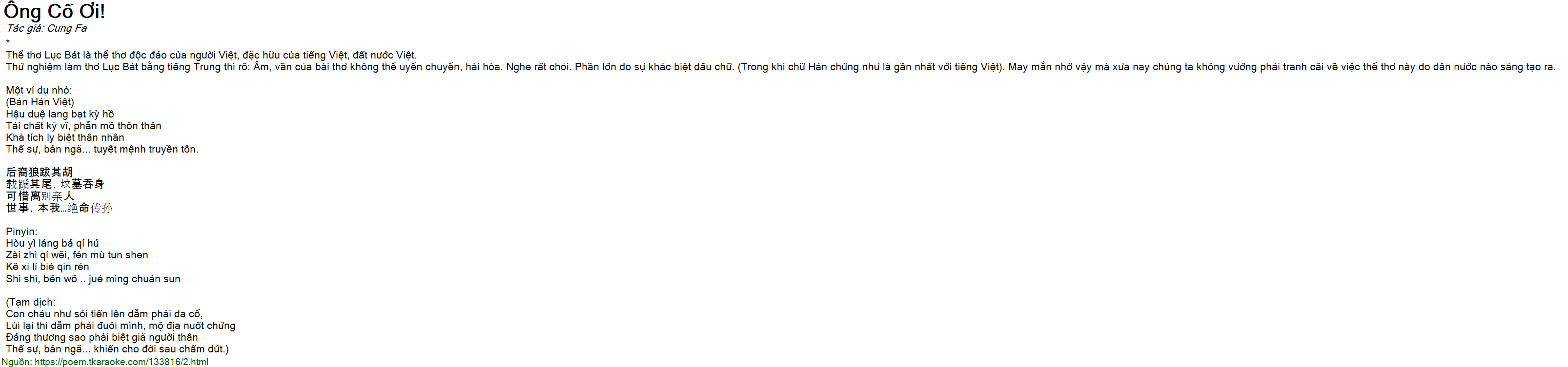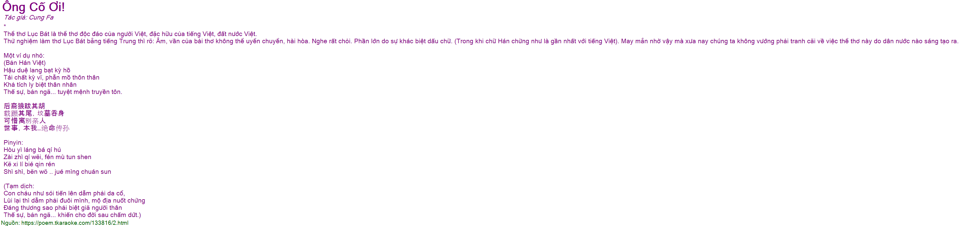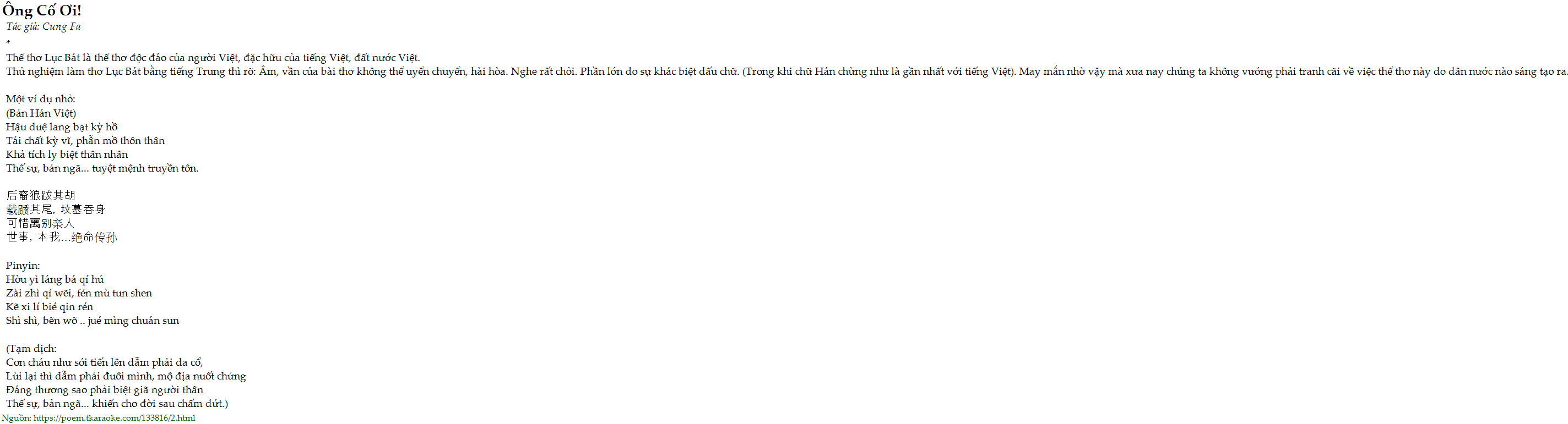 ông cố ơi! (thử nghiệm làm thơ lục bát bằng tiếng trung)