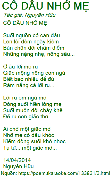 CÔ DÂU NHỚ MẸ