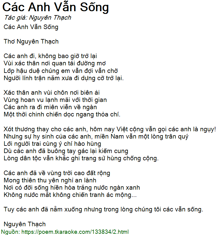 Xot thuong thay cho cac anh, hom nay Viet cong van goi cac anh la nguy!