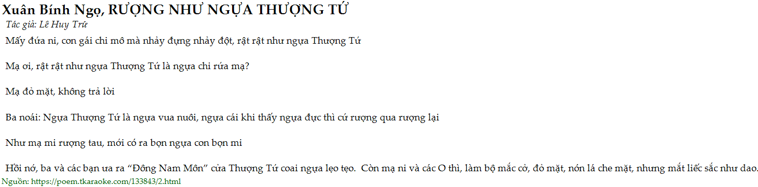 Ba noái: Ngụa Thuọng Tú là ngụa vua nuoi, ngụa cái khi tháy ngụa dục thì cú ruọng qua ruọng lại