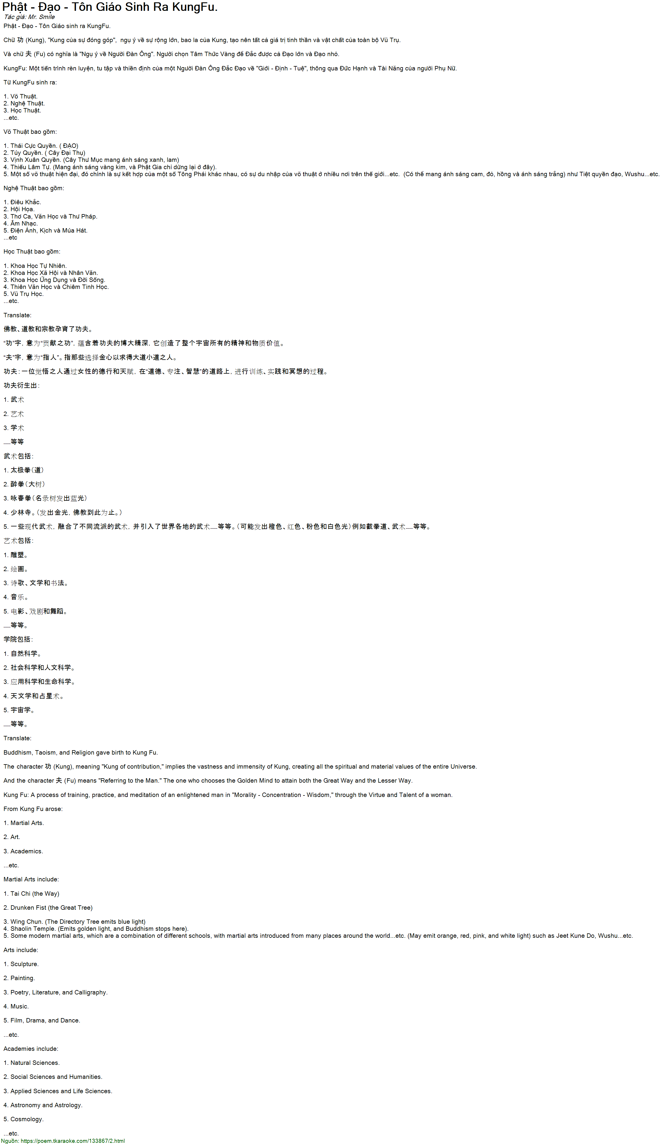Phat - Dao - Ton Giao sinh ra KungFu.