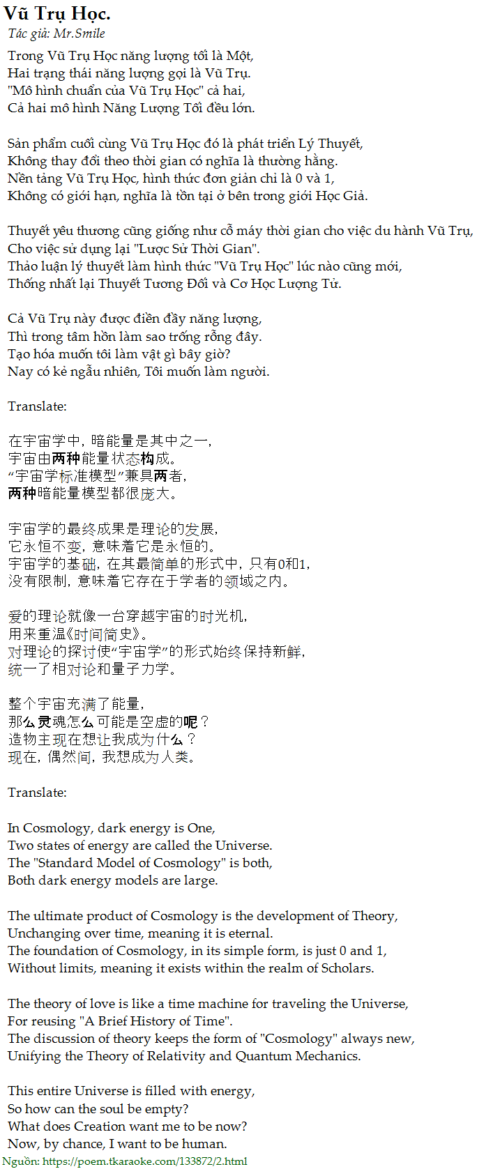 Hai trạng thái năng lượng gọi là Vũ Trụ.