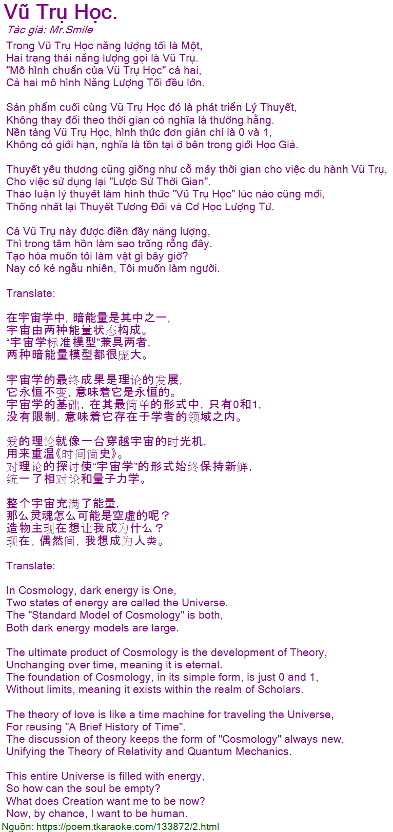 Trong Vũ Trụ Học năng lượng tối là Một,