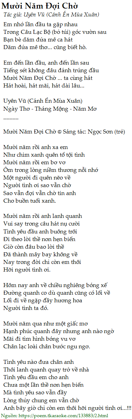Muoi Nam Doi Cho @ Sang tac: Ngoc Son (tre)