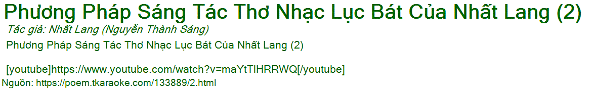 Phương Pháp Sáng Tác Thơ Nhạc Lục Bát Của Nhất Lang (2)