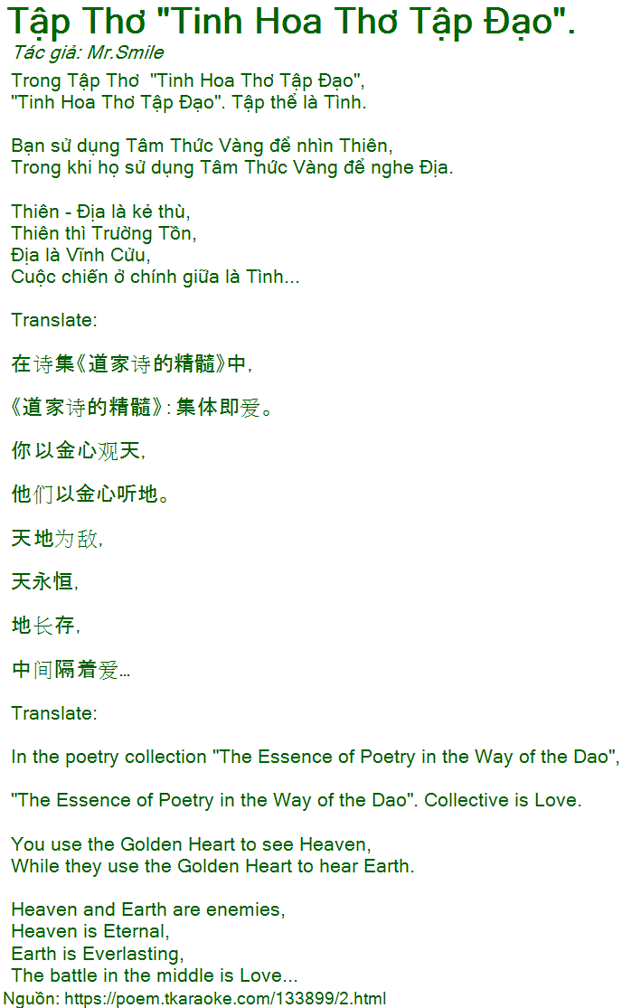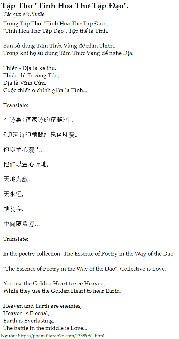 "Tinh Hoa Tho Tap Dao". Tap the la Tinh.