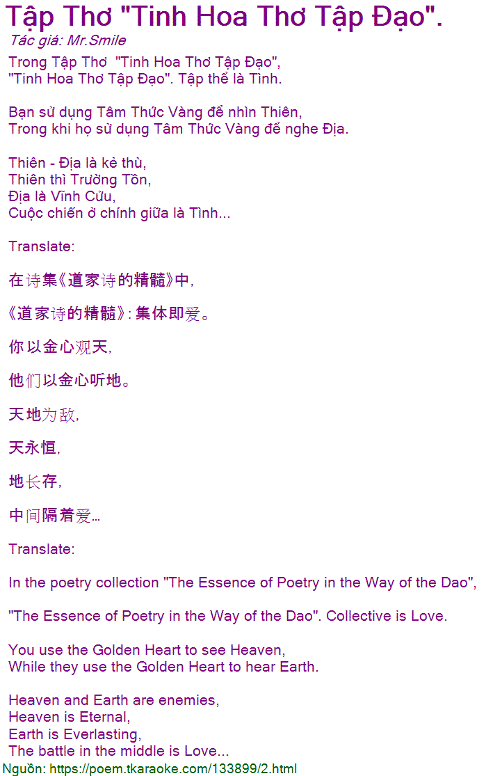 In the poetry collection "The Essence of Poetry in the Way of the Dao",
