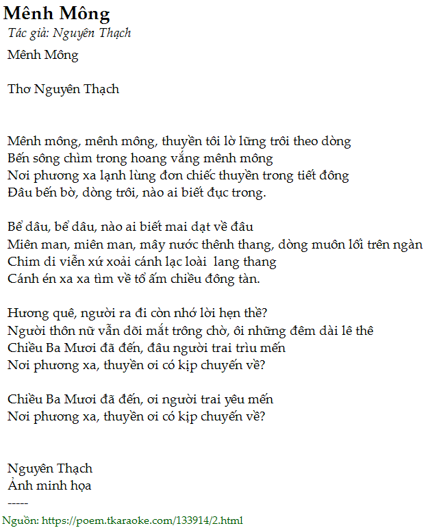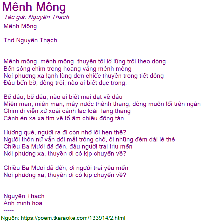 Mênh mông, mênh mông, thuyền tôi lờ lững trôi theo dòng