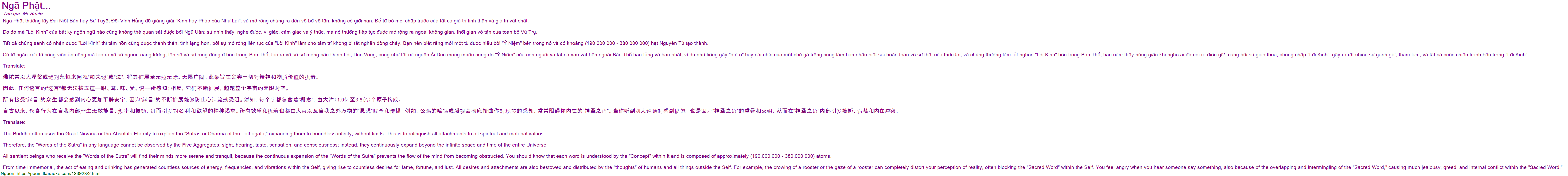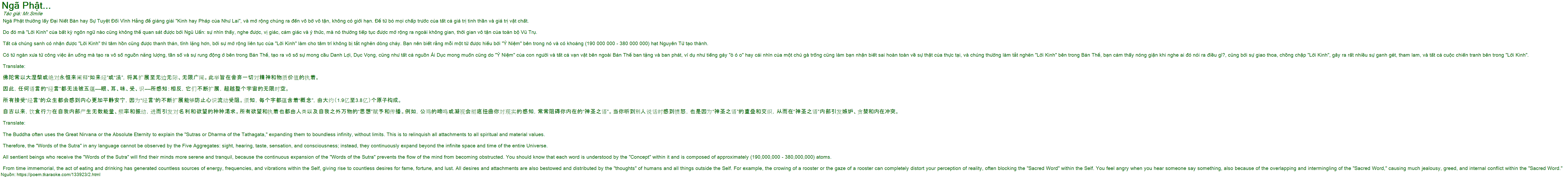 All sentient beings who receive the "Words of the Sutra" will find their minds more serene and tranquil, because the continuous expansion of the "Words of the Sutra" prevents the flow of the mind from becoming obstructed. You should know that each word is understood by the "Concept" within it and is composed of approximately (190,000,000 - 380,000,000) atoms.