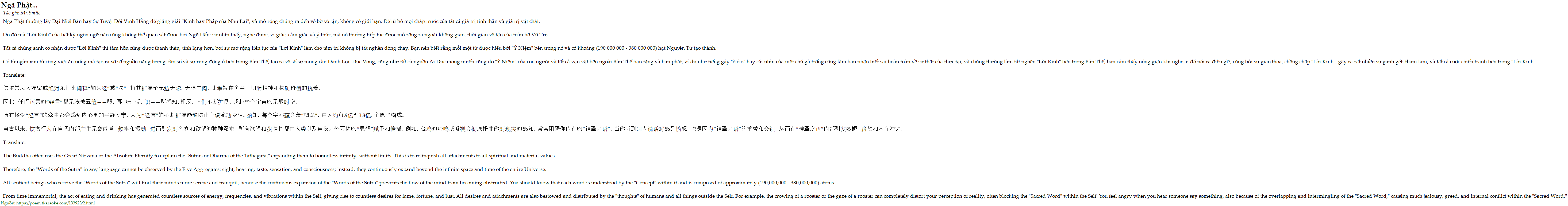 From time immemorial, the act of eating and drinking has generated countless sources of energy, frequencies, and vibrations within the Self, giving rise to countless desires for fame, fortune, and lust. All desires and attachments are also bestowed and distributed by the "thoughts" of humans and all things outside the Self. For example, the crowing of a rooster or the gaze of a rooster can completely distort your perception of reality, often blocking the "Sacred Word" within the Self. You feel angry when you hear someone say something, also because of the overlapping and intermingling of the "Sacred Word," causing much jealousy, greed, and internal conflict within the "Sacred Word."
