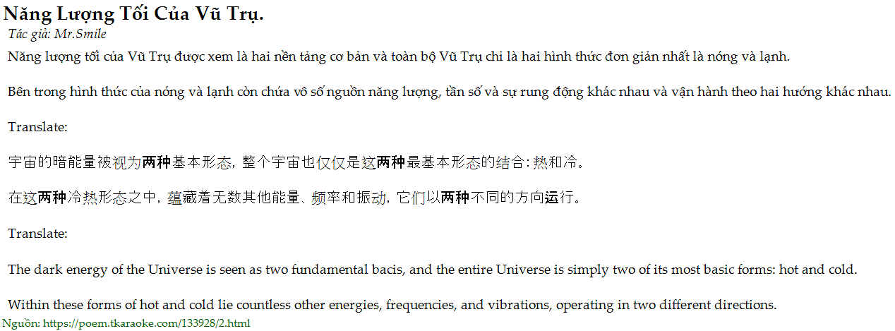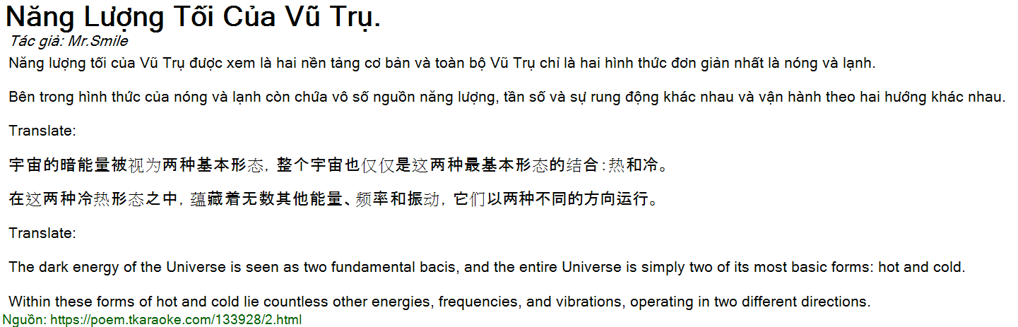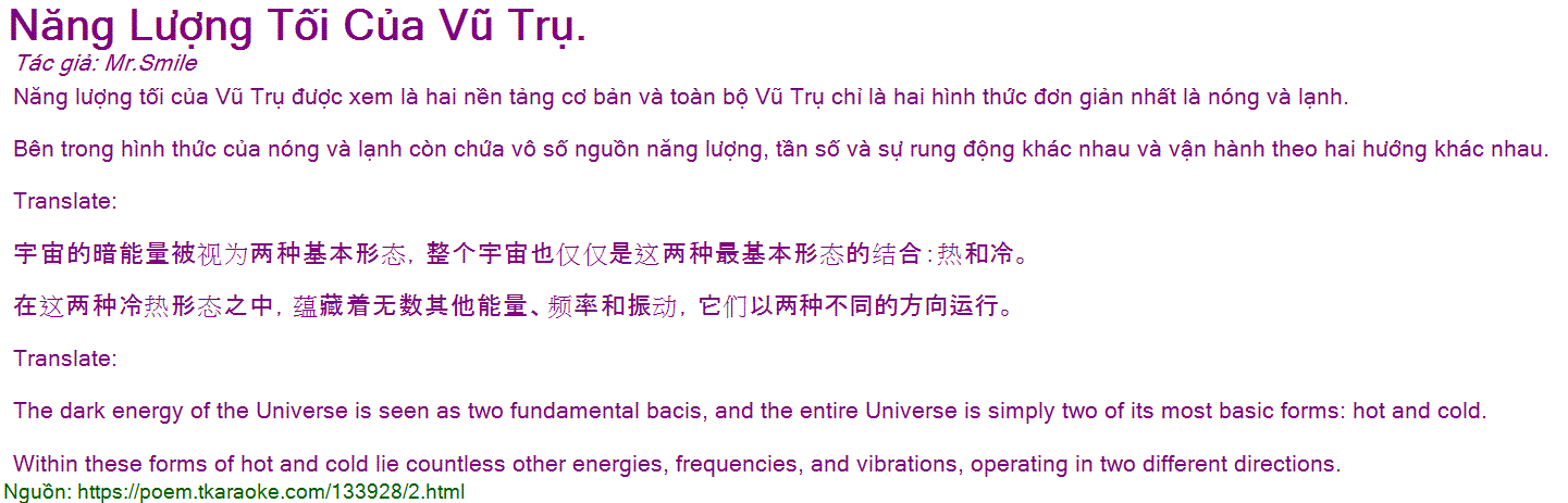 Năng lượng tối của Vũ Trụ được xem là hai nền tảng cơ bản và toàn bộ Vũ Trụ chỉ là hai hình thức đơn giản nhất là nóng và lạnh.