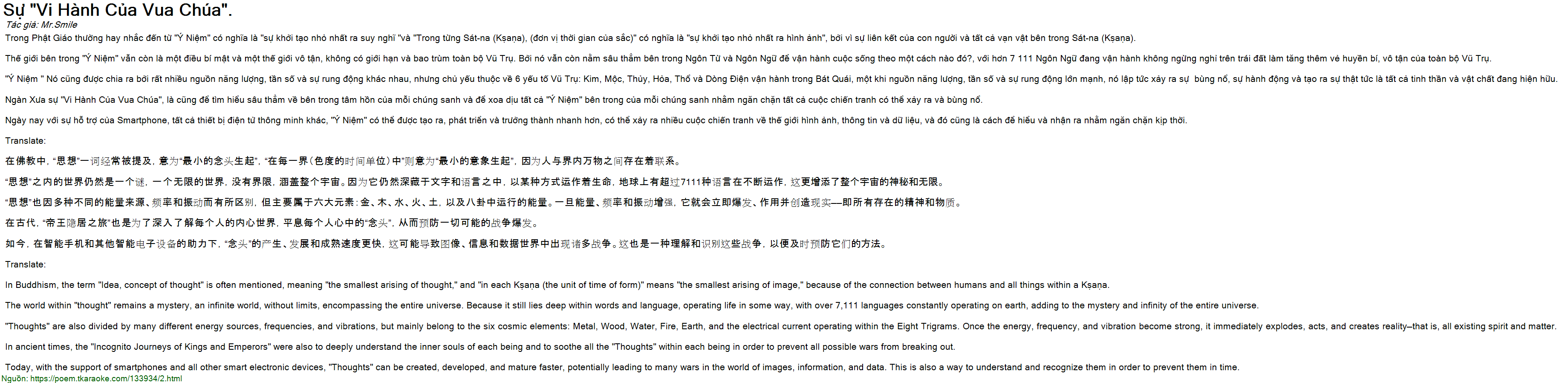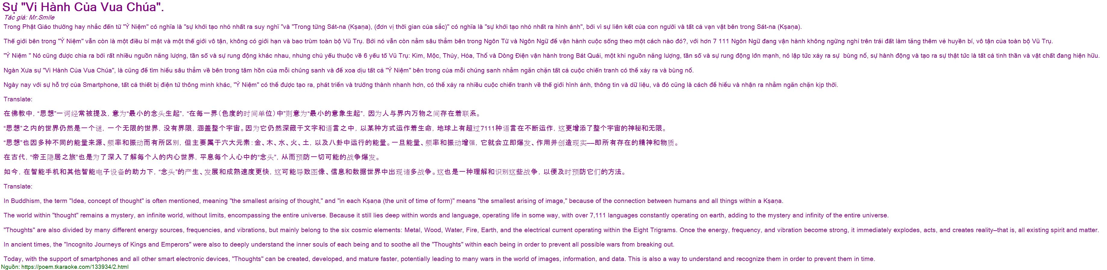 Ngàn Xưa sự "Vi Hành Của Vua Chúa", là cũng để tìm hiểu sâu thẳm về bên trong tâm hồn của mỗi chúng sanh và để xoa dịu tất cả "Ý Niệm" bên trong của mỗi chúng sanh nhằm ngăn chặn tất cả cuộc chiến tranh có thể xảy ra và bùng nổ.
