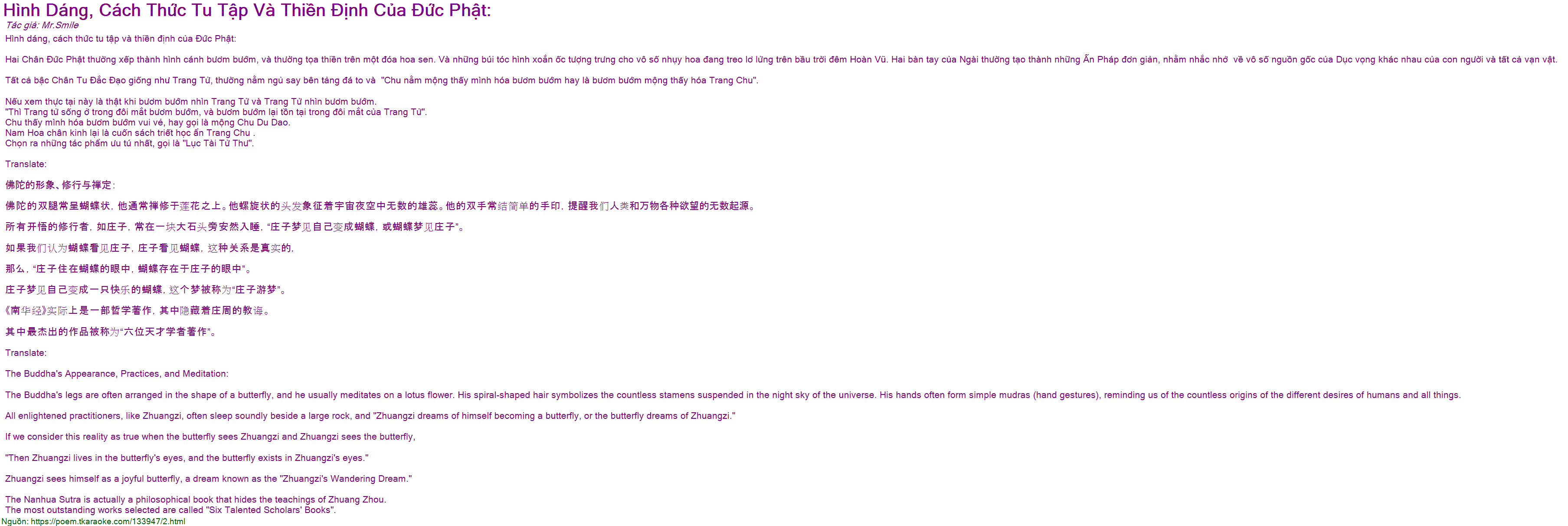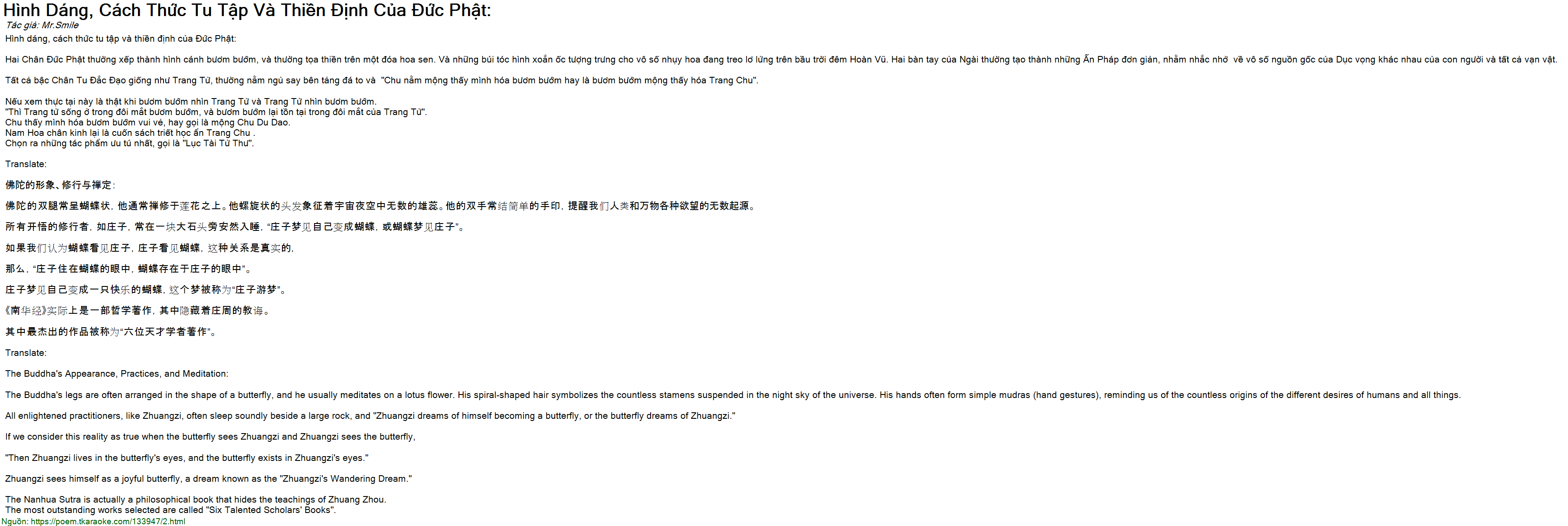 hình dáng, cách thức tu tập và thiền định của đức phật: