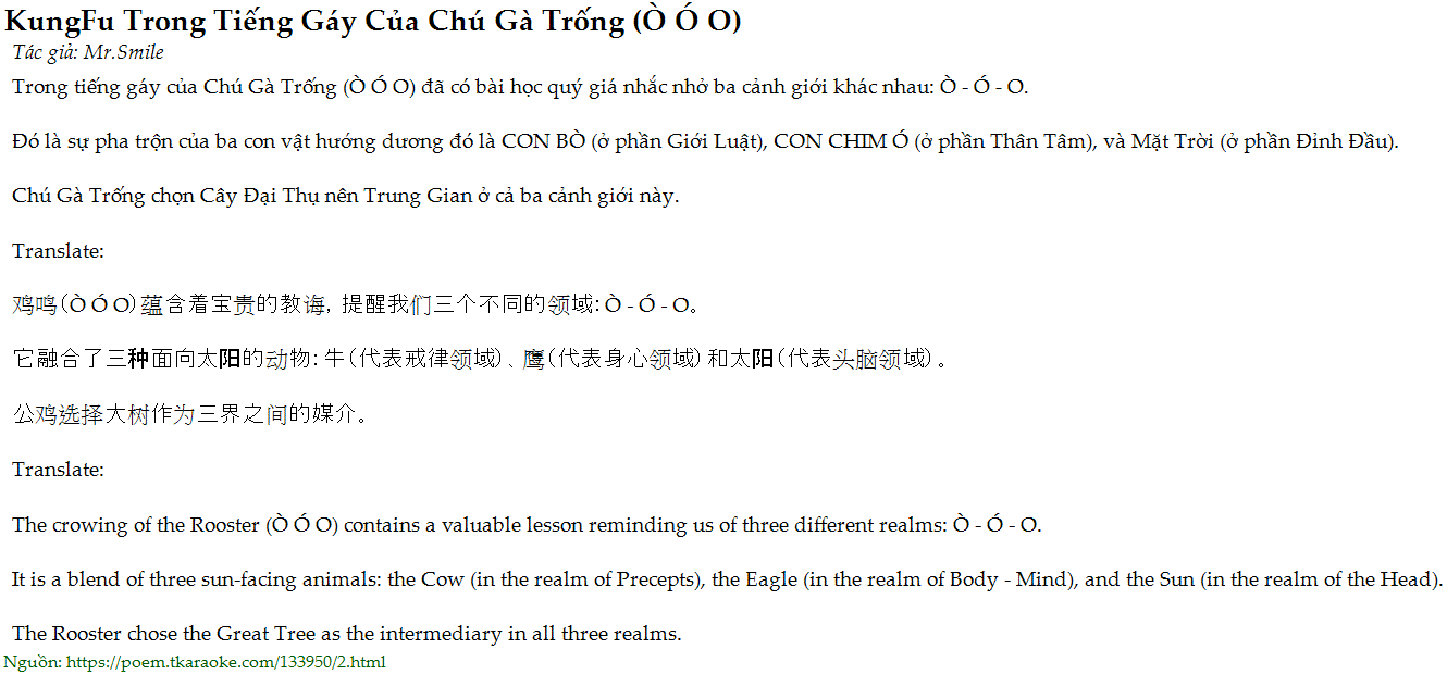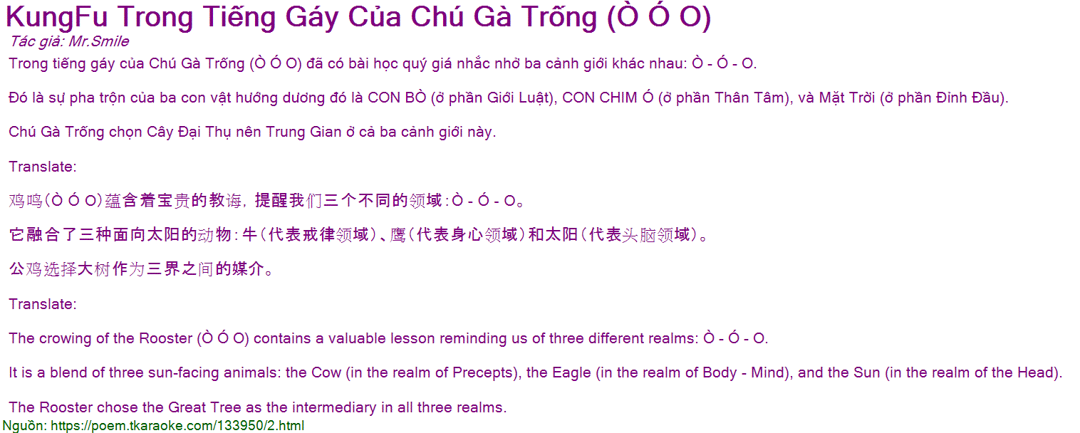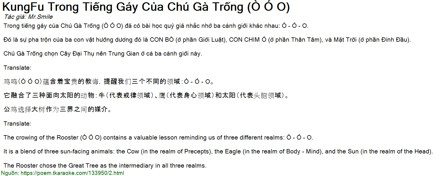 Trong tiếng gáy của Chú Gà Trống (Ò Ó O) đã có bài học quý giá nhắc nhở ba cảnh giới khác nhau: Ò - Ó - O.